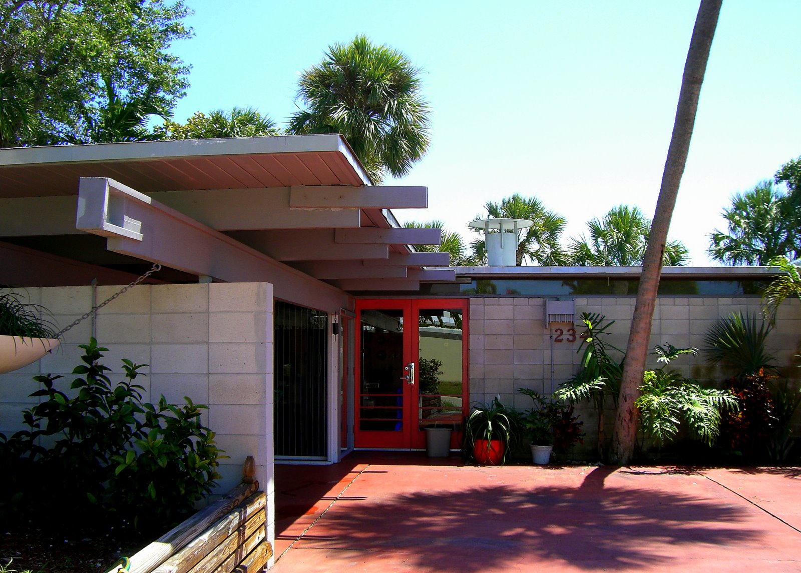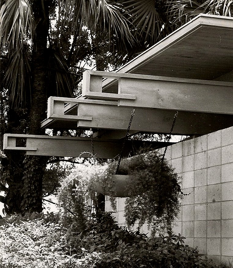 The solution was a seven foot high wall virtually around the entire lot at the building setback lines with the enclosed living space an "L" shape. The living space then opened to a covered and screened Lanai, and then out to a private walled Terrace and Garden.
