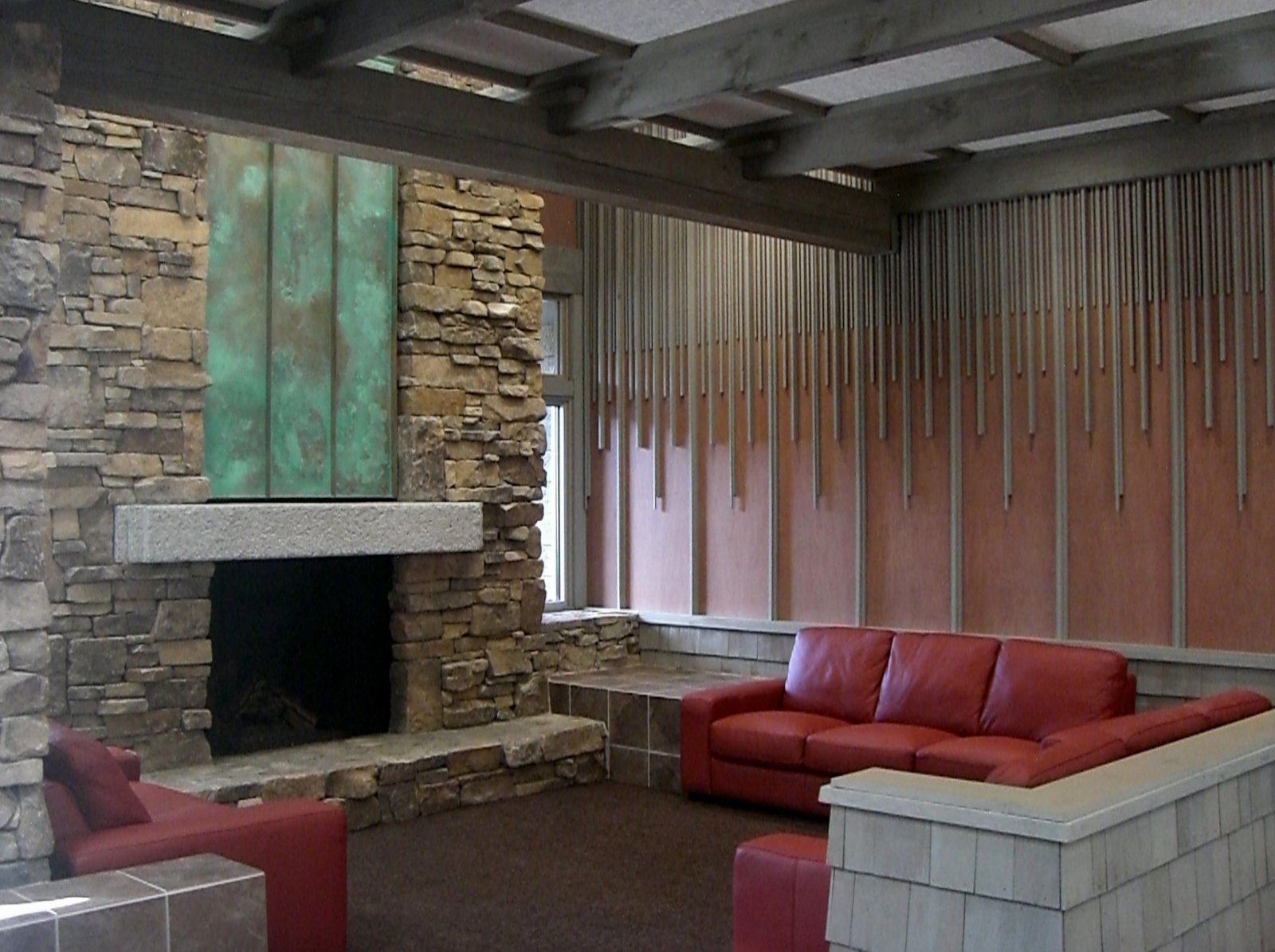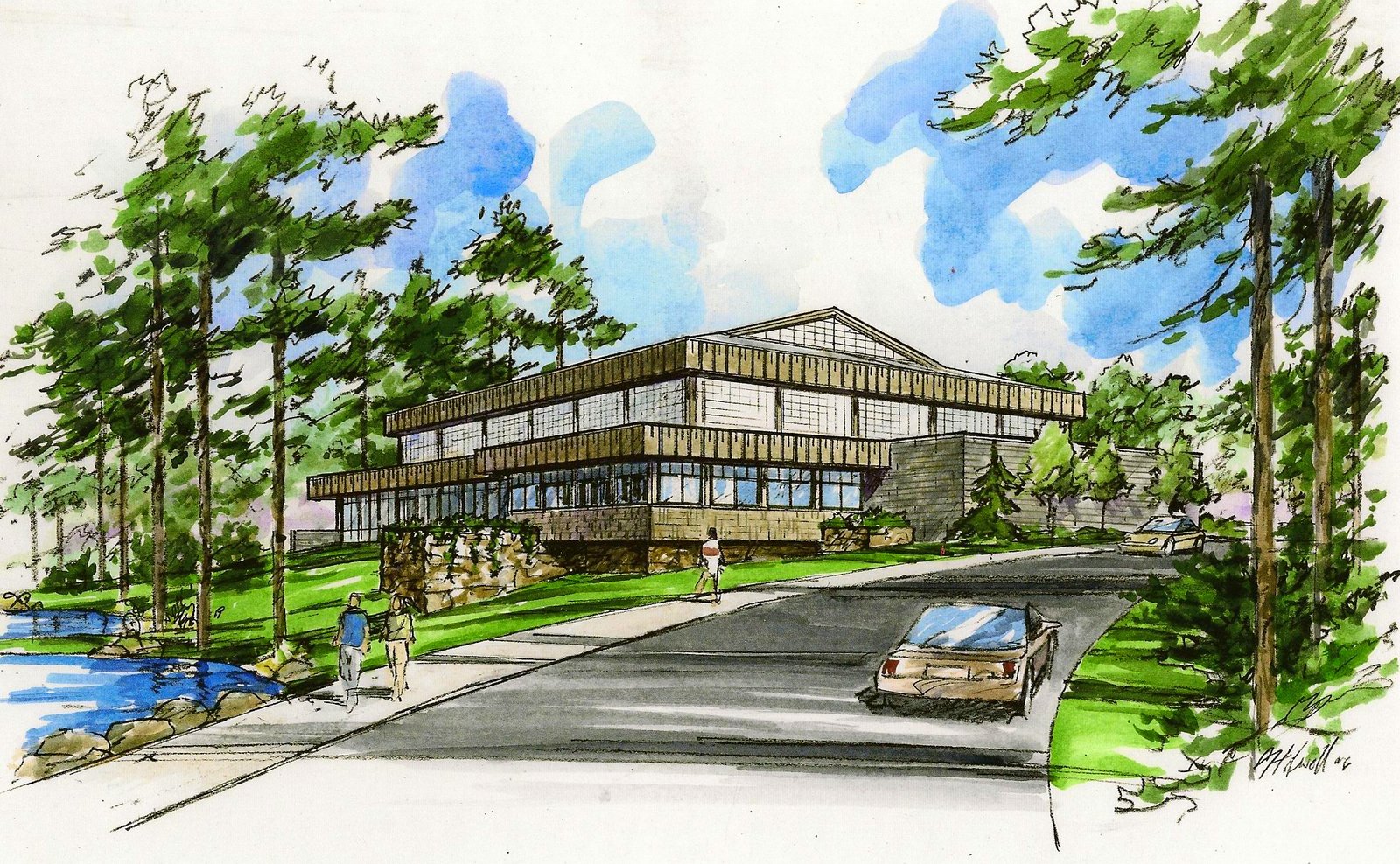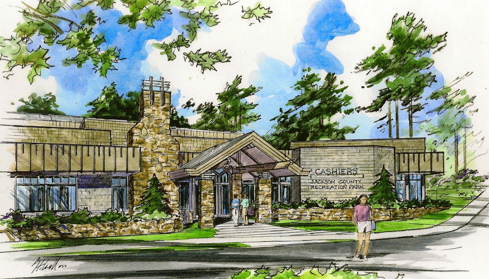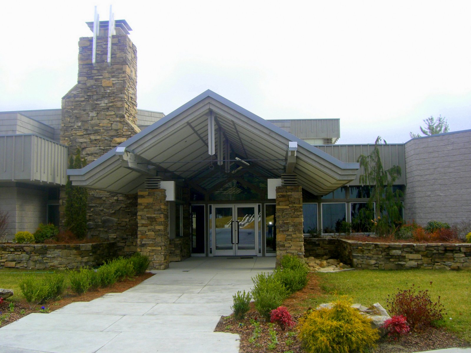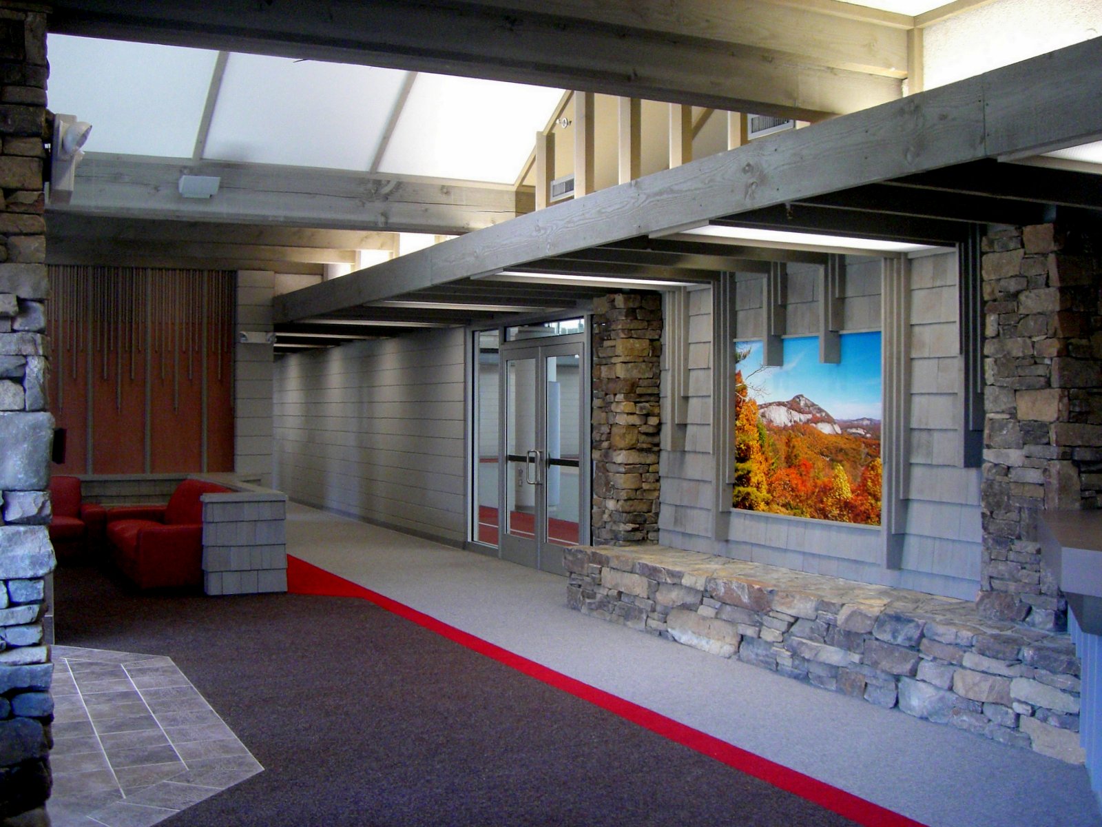 In addition to the gymnasium and running track, the facility includes a weight/fitness room, an aerobics/dance exercise room and a meeting room/kitchen. The materials are split face block, Tennessee field stone and wood.