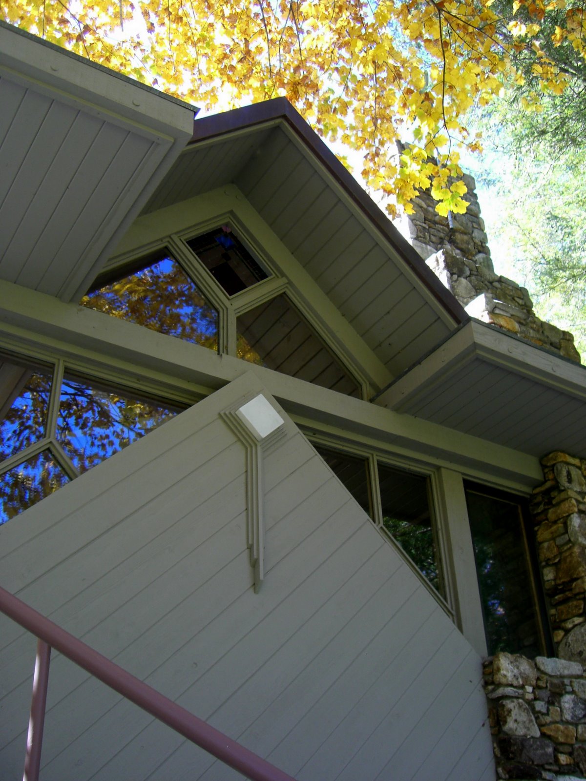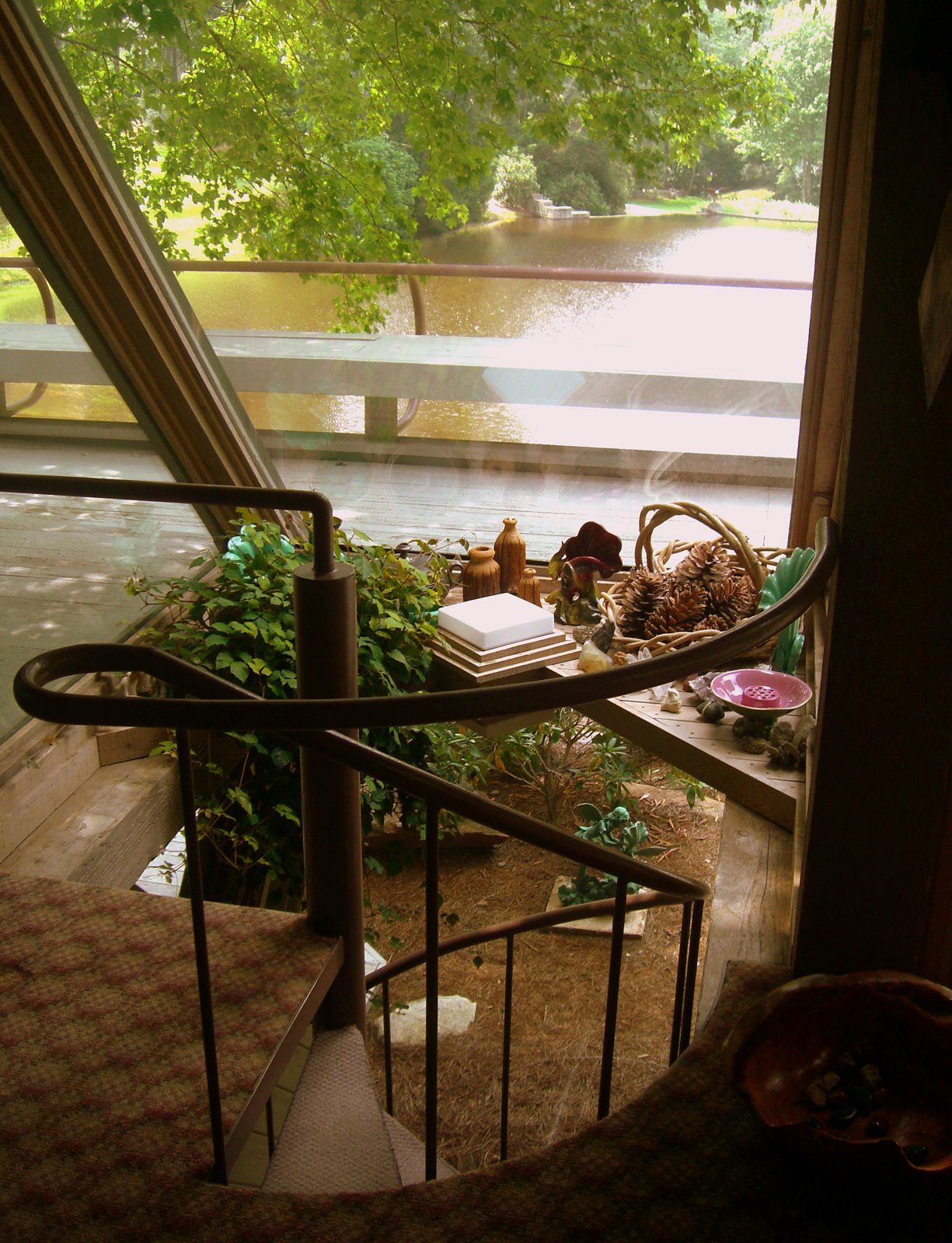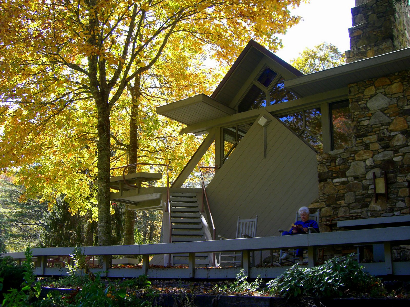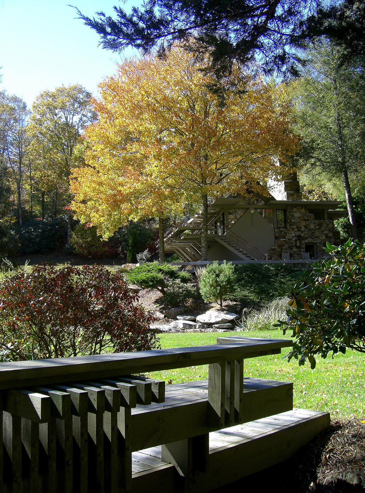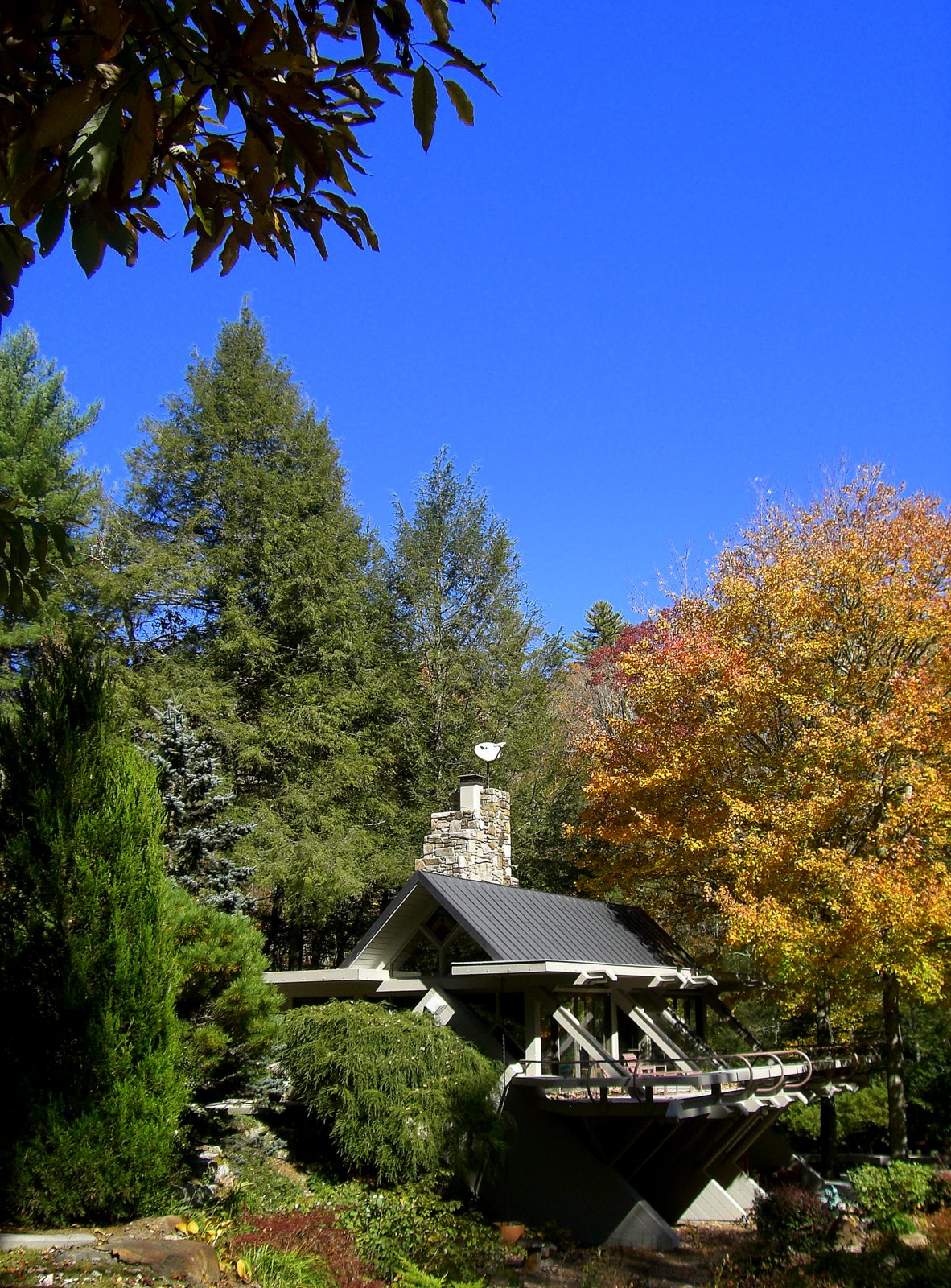 In 1983 Mary and I bought 50 acres in the North Carolina mountains which had been timbered in 1947 and untouched since. We pioneered the clearing of land, preparing a pond site and identifying a site for a house, which was built over the winter and occupied the next summer. A cabin really in spirit and size, the basic structure is 12'x 30'……2 stories with a fireplace, kitchen, foyer and carport added to the north side and a large deck cantilevered to the south. A bedroom, study, bath and laundry occupy the lower level which leads out to another east facing multilevel deck overlooking a vegetable garden and "park".
