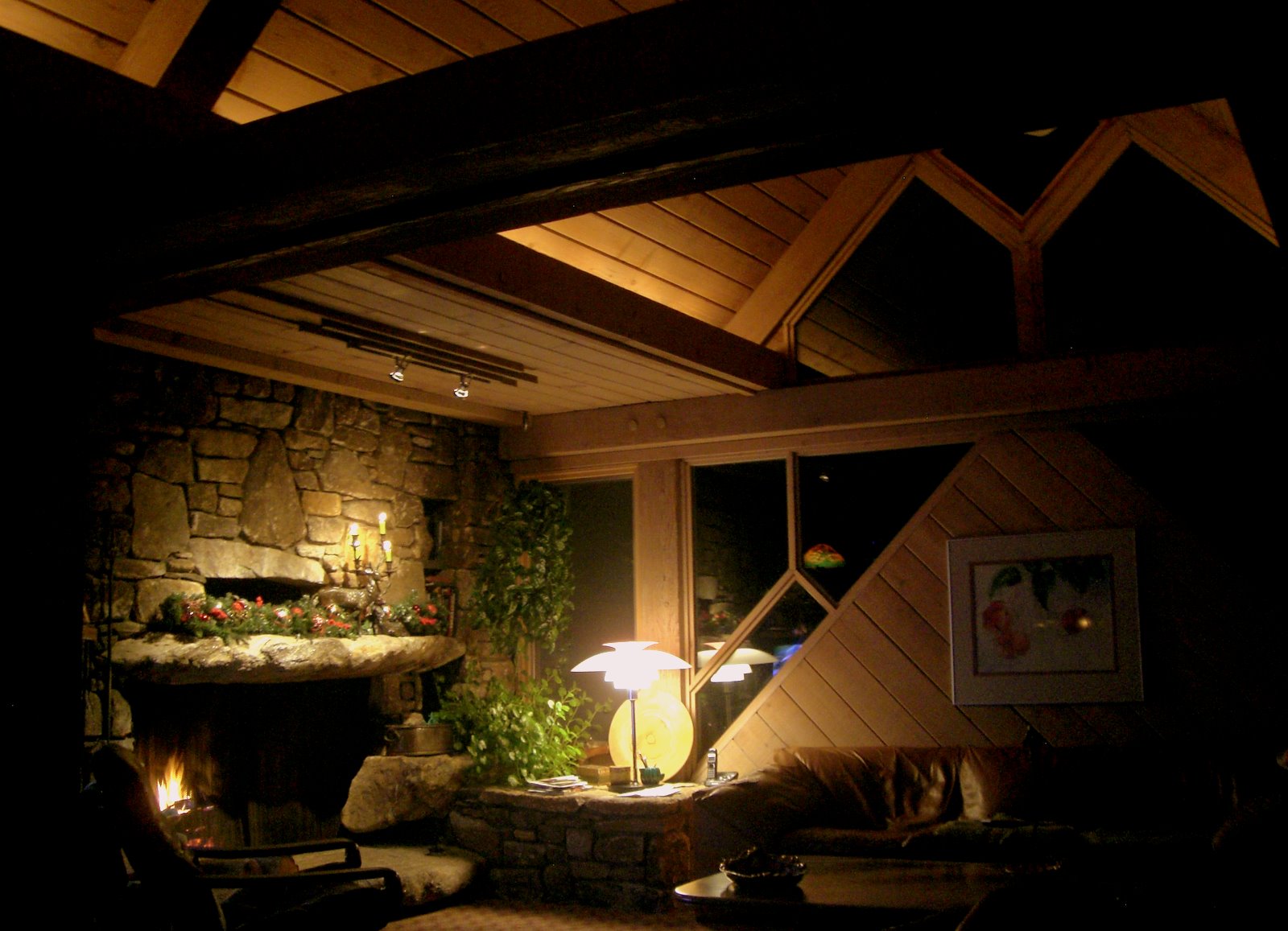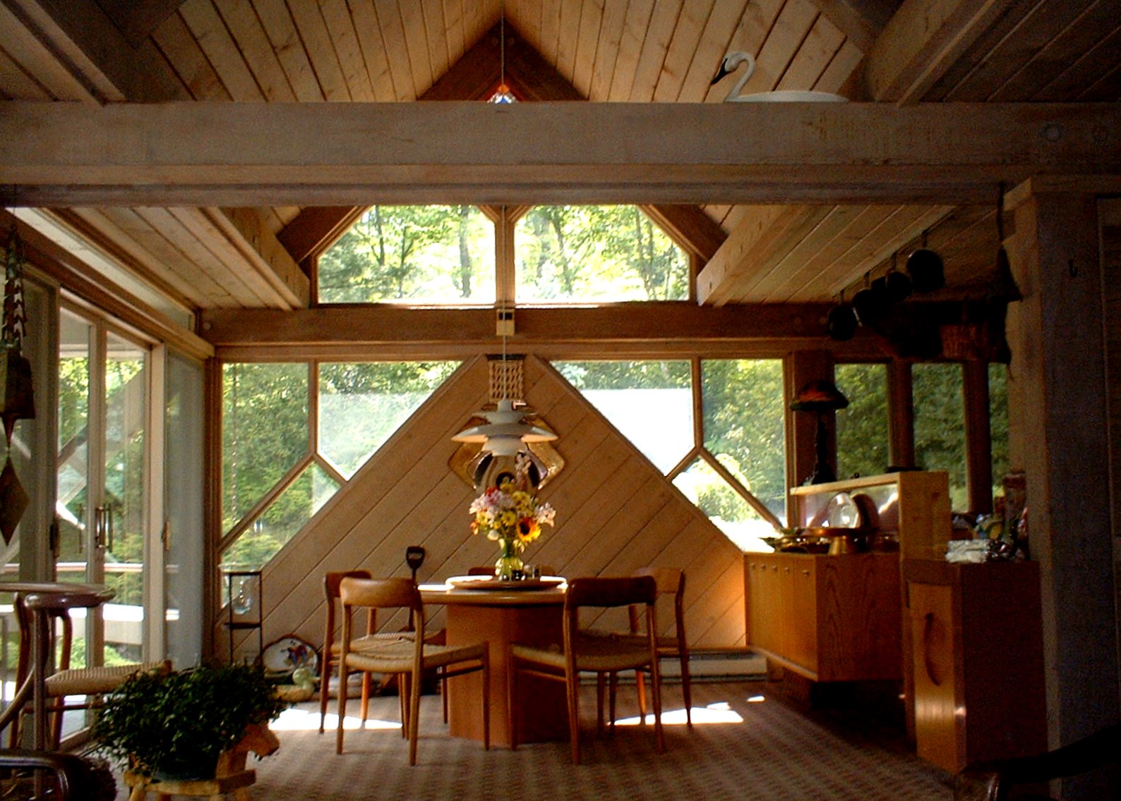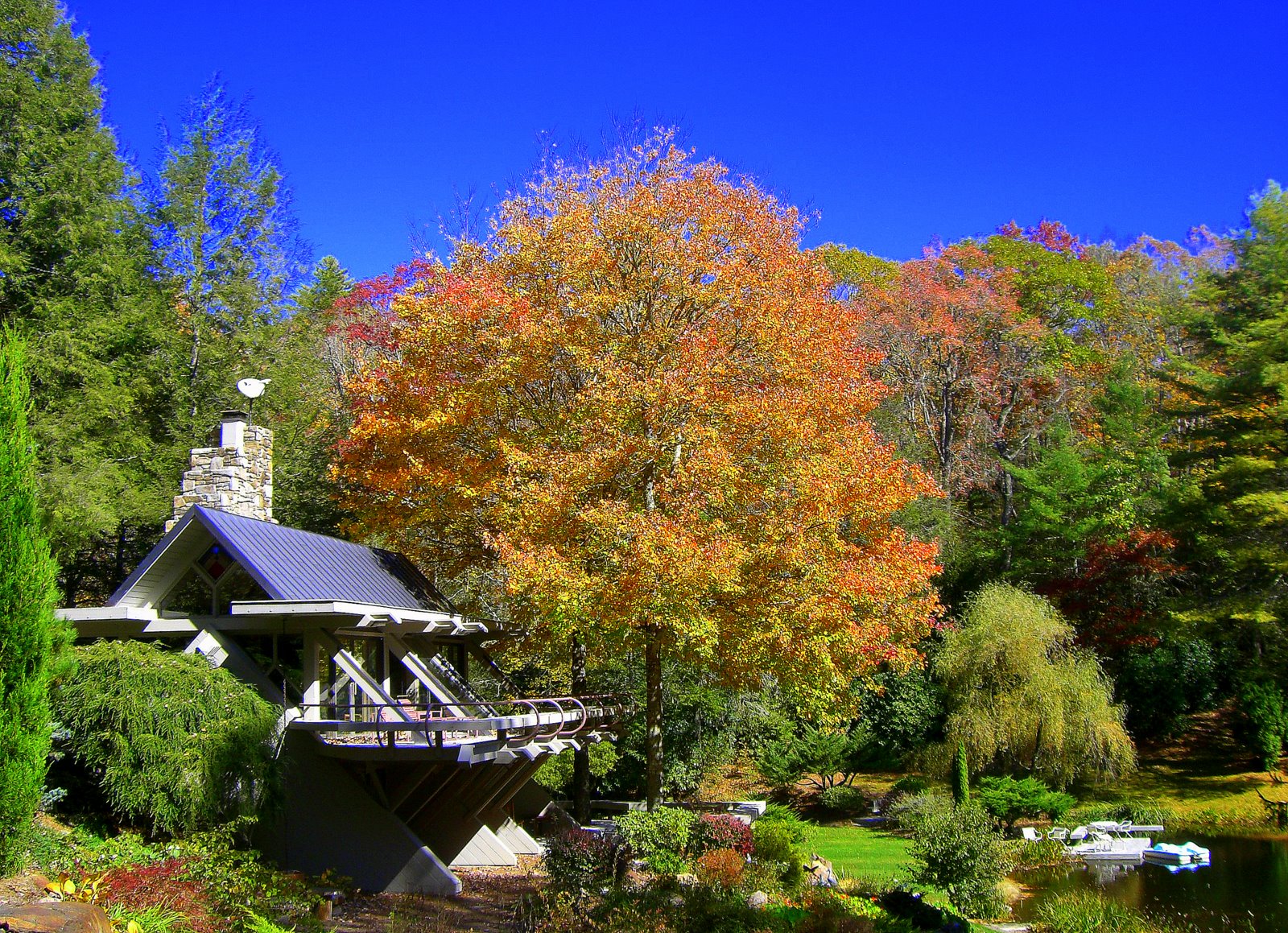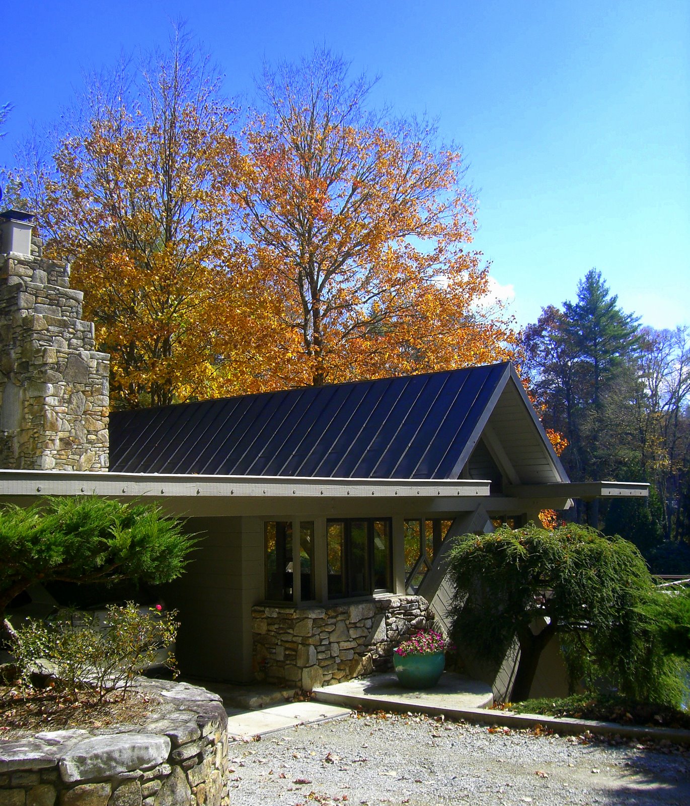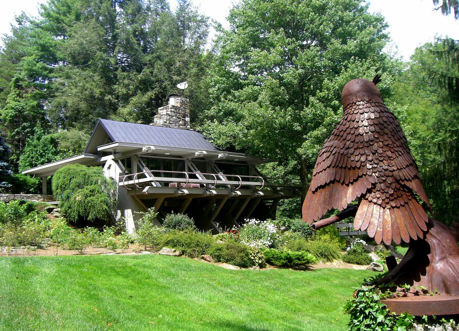 In 1983 Mary and I bought 50 acres in the North Carolina mountains which had been timbered in 1947 and untouched since. We pioneered the clearing of land, preparing a pond site and identifying a site for a house, which was built over the winter and occupied the next summer. A cabin really in spirit and size, the basic structure is 12'x 30'……2 stories with a fireplace, kitchen, foyer and carport added to the north side and a large deck cantilevered to the south. A bedroom, study, bath and laundry occupy the lower level which leads out to another east facing multilevel deck overlooking a vegetable garden and "park".