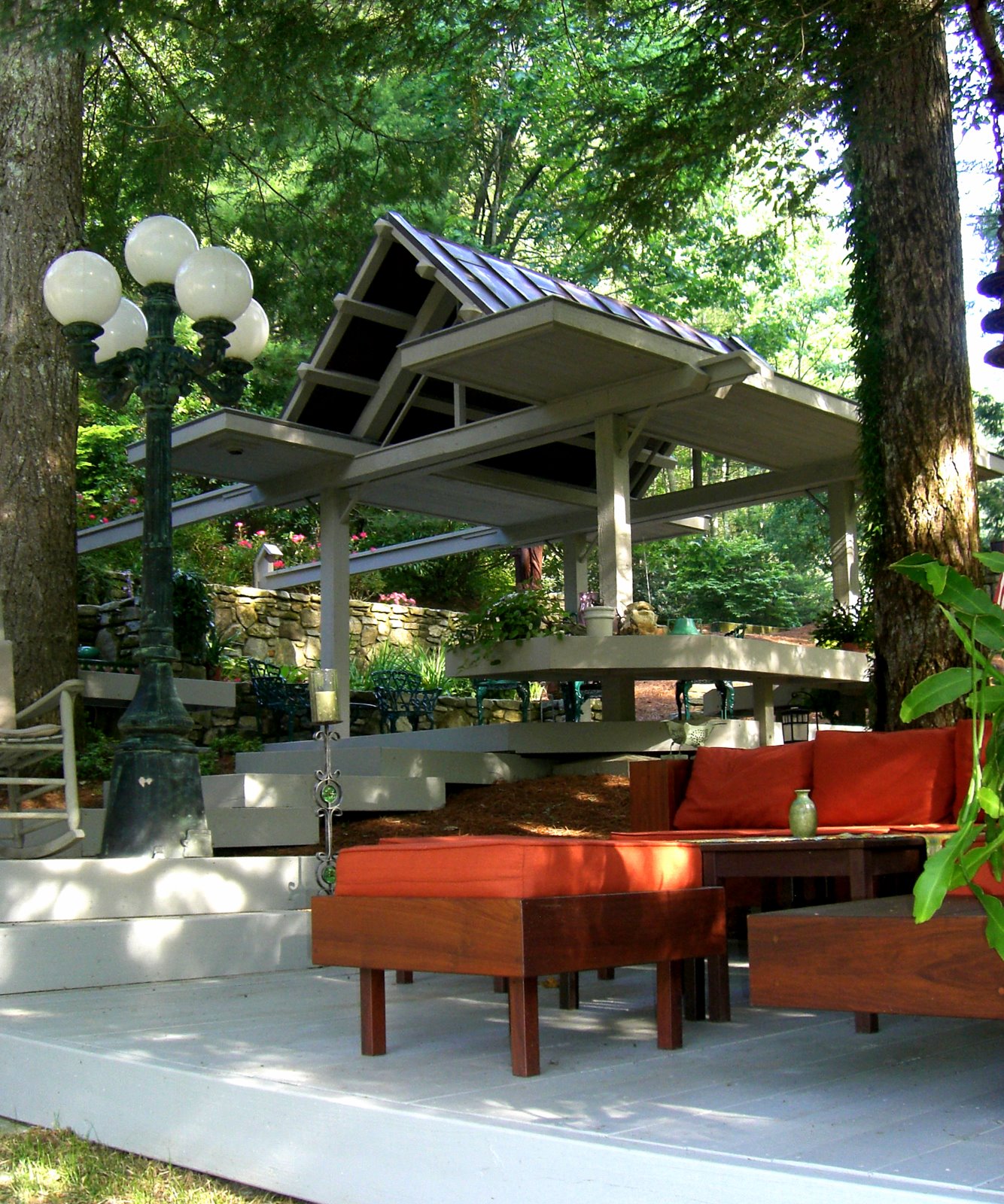 It originally was intended to be a Guest House, but as our family dispersed, it turned out to be perfect for two people. In 2001 we left Florida to be full time mountain folks. I remodeled our two story barn into my office with a guest house above, and did a few other modifications to accommodate our needs. More outside space, a gazebo, kitchen and a "living room" were added, and landscaping is never finished.