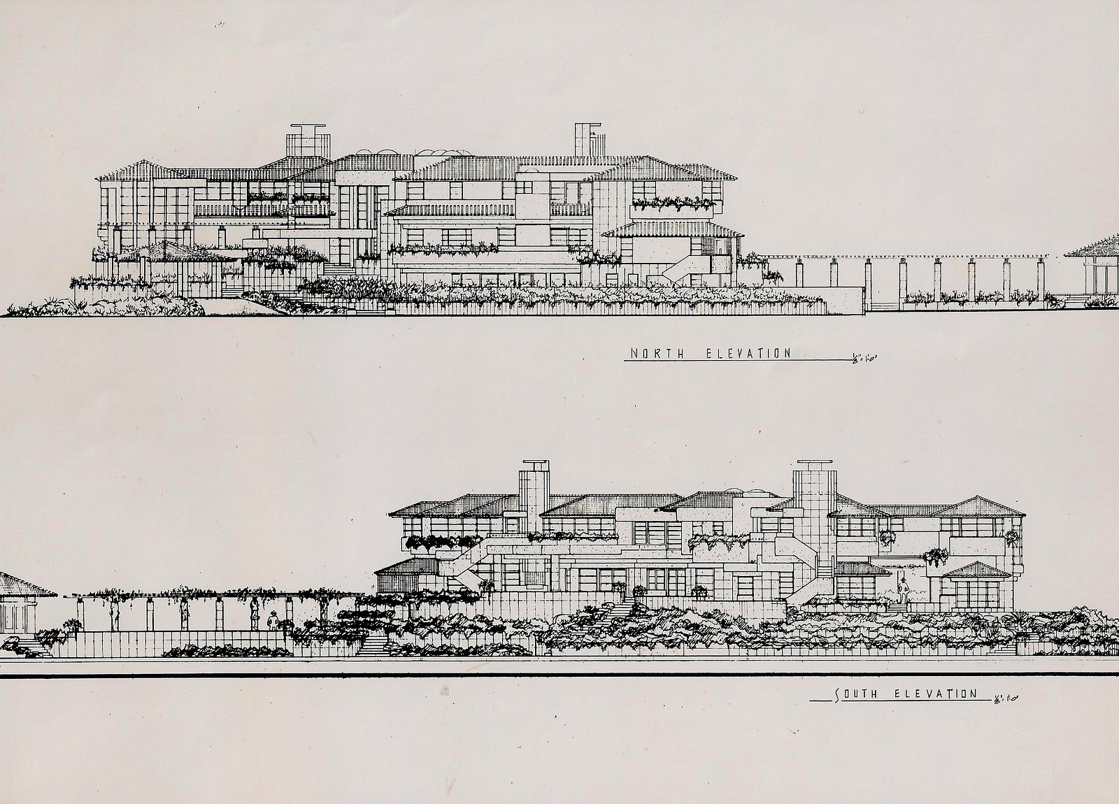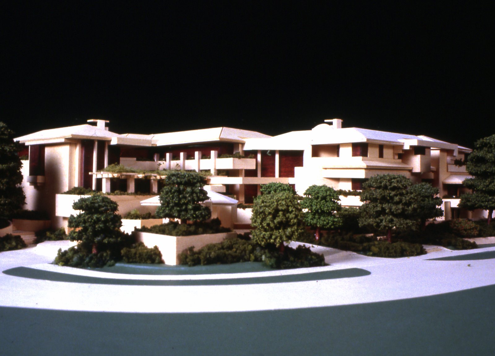 This made three stories necessary and required squeezing the structure between the minimum flood elevation and the 35' maximum height restriction. It became rather overpowering to the scale of the neighborhood and I did everything I could to emphasize horizontality, lightness and minimize the scale of its parts. In the process we created an incredibly complicated structure of concrete and steel. We had completed 105 sheets of working drawings before being stopped. Normally that would be considered an office tragedy, but in this case I felt that it was a project that probably should not be built.