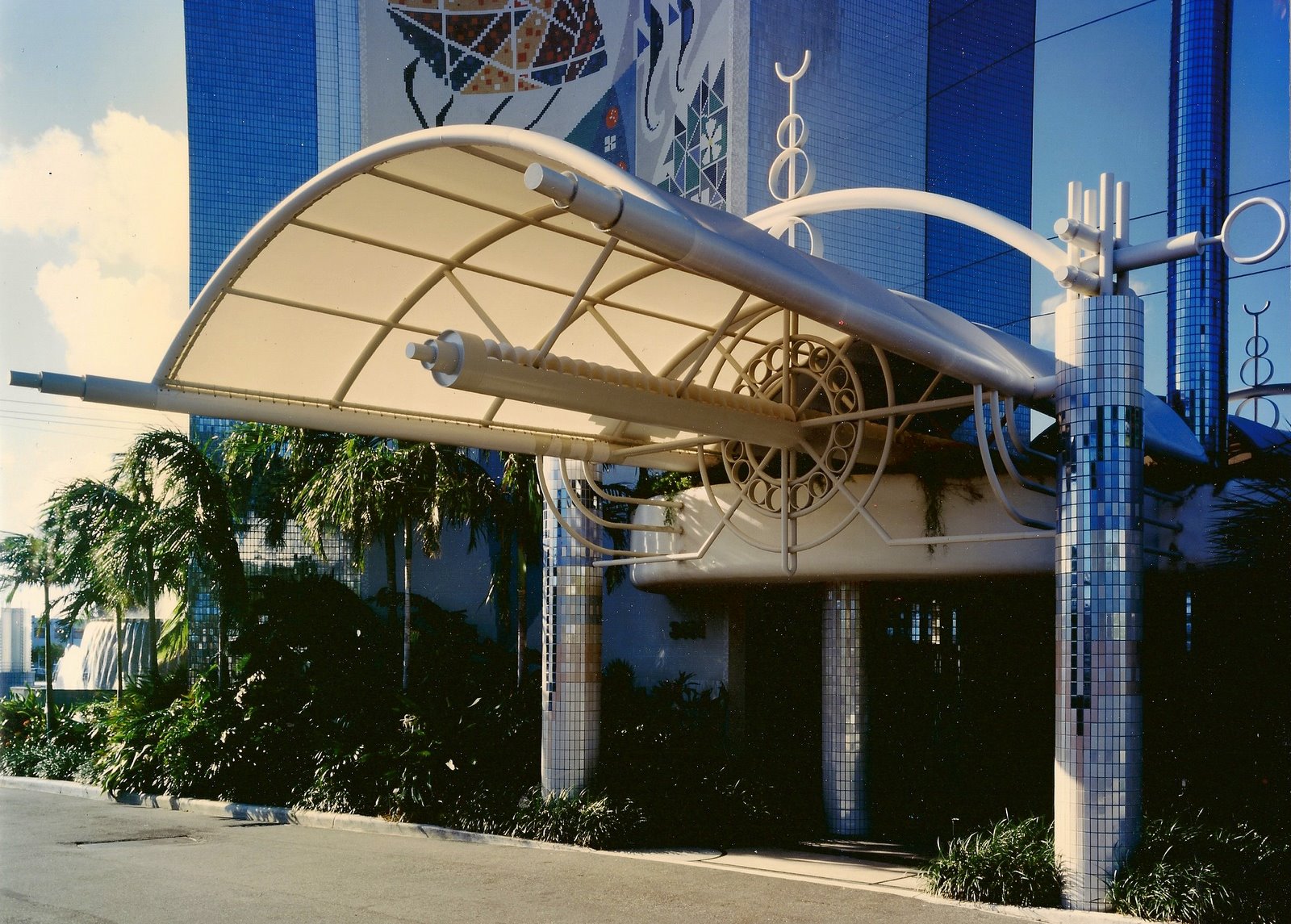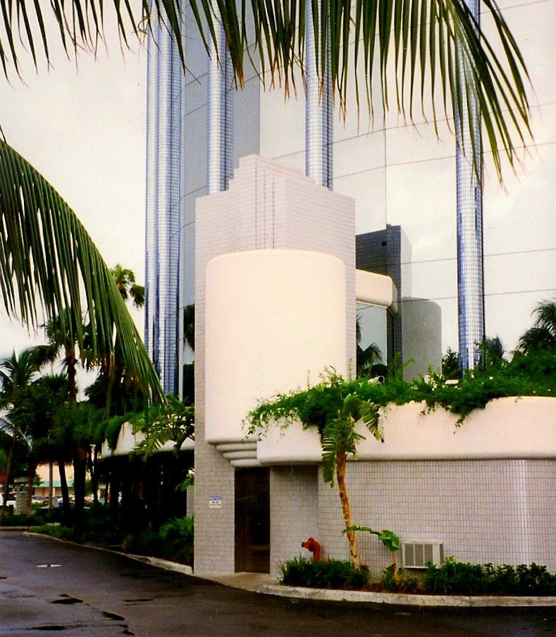 In 1994/95 a restaurant and nightclub named "Hot Chocolate" was added to the second floor level with covered valet parking and a separate entrance beneath the nightclub. This addition provided the opportunity to balance the simplicity of the tower with more interesting sculptural elements. The circular steel details at the entrance canopy and elsewhere are there to "Celebrate the Circle".