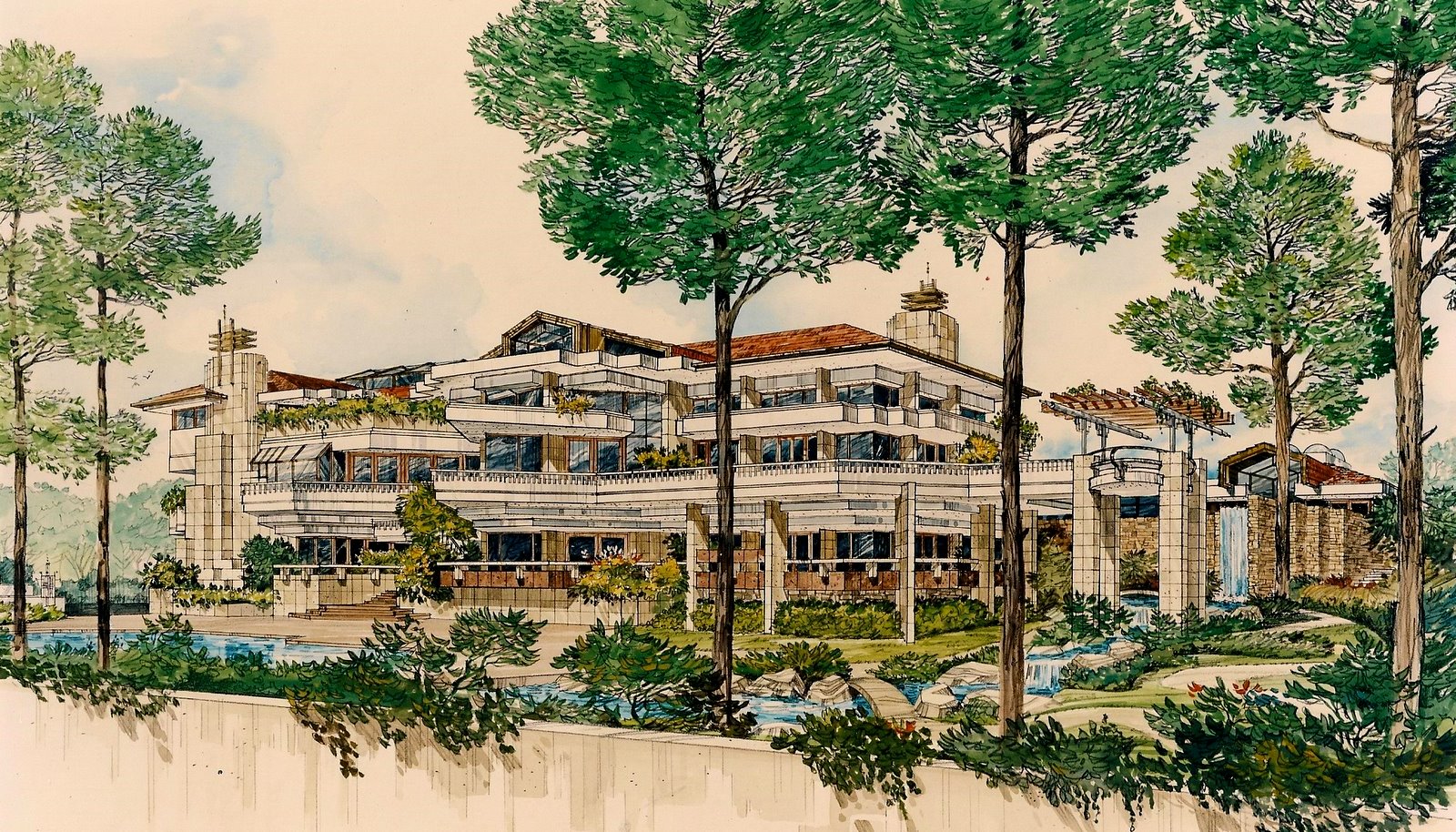 As it was cut deeply into the hill, only two levels were seen from the street and would have a comfortable horizontality, but a vigorous organic geometry.