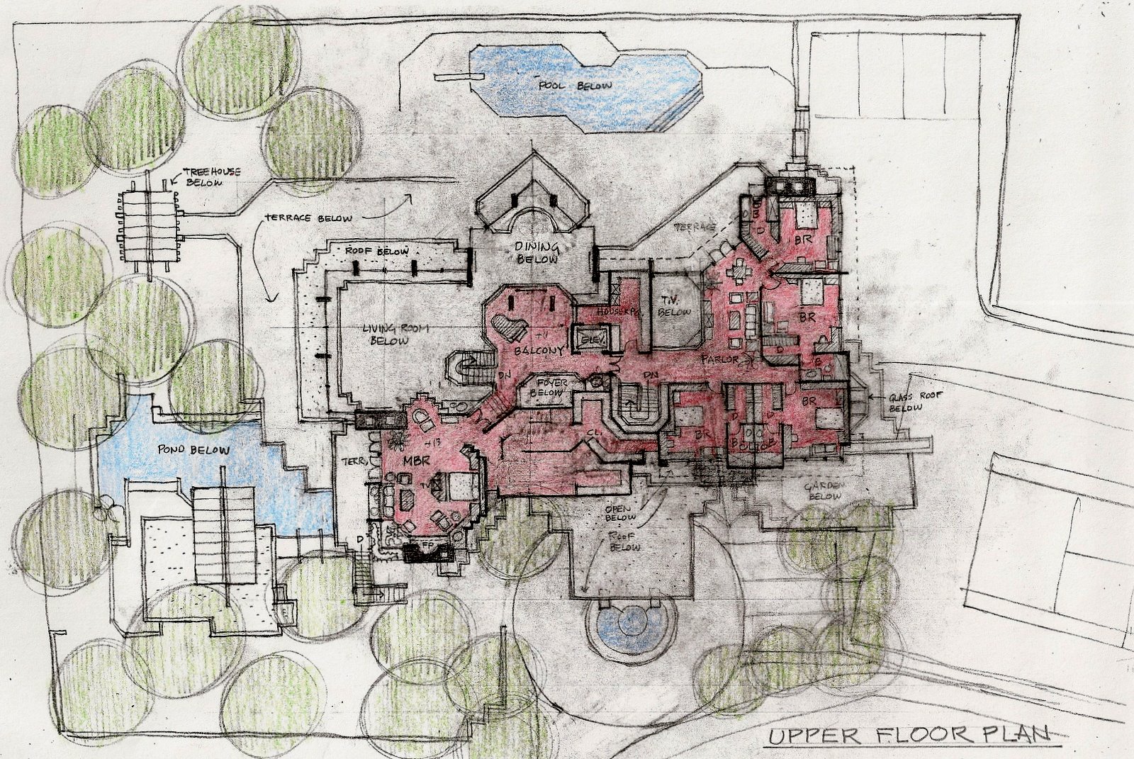 The program required a very large and complicated house and ultimately resulted in about 30,000 sq. ft. on four levels. He wanted basically a white house with a red roof like most in Belgrade, but that was where the similarity ended.