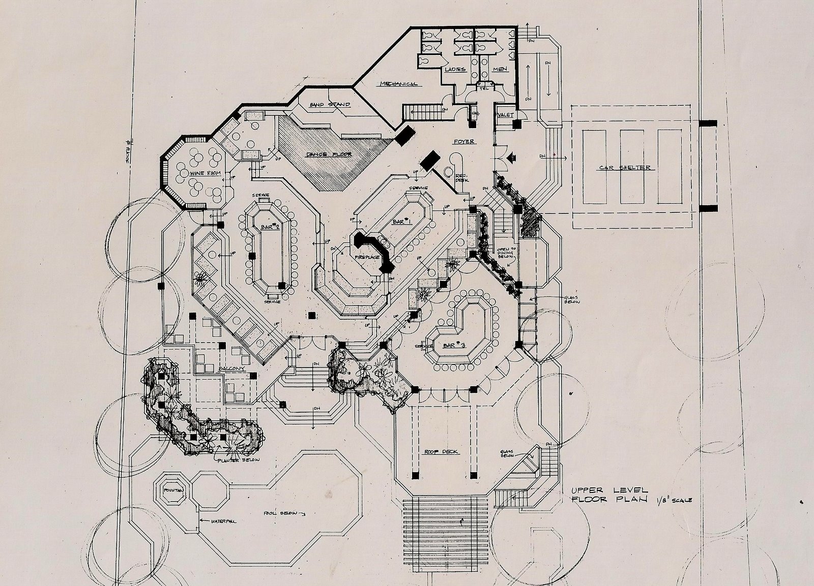 This project followed Montego Bay and Uptown, each opened a year apart, in April……again, my multi-faceted star client. It was to be primarily concrete, sandblasted and exposed. Stainless steel and red granite were the other major materials. It had many different levels, mainly to place everyone in view of the band and activity. But it also was structurally complicated, expensive and slow.