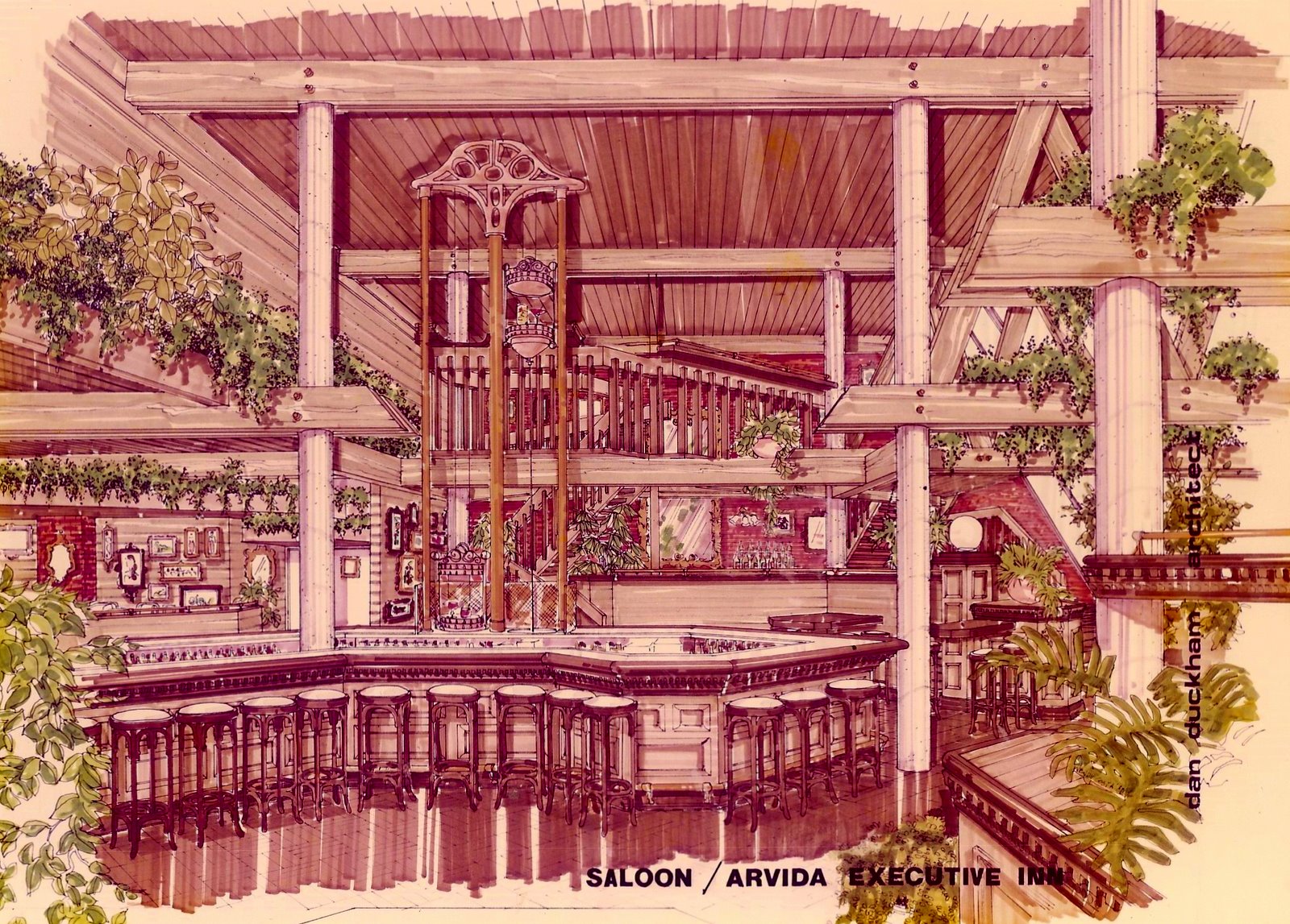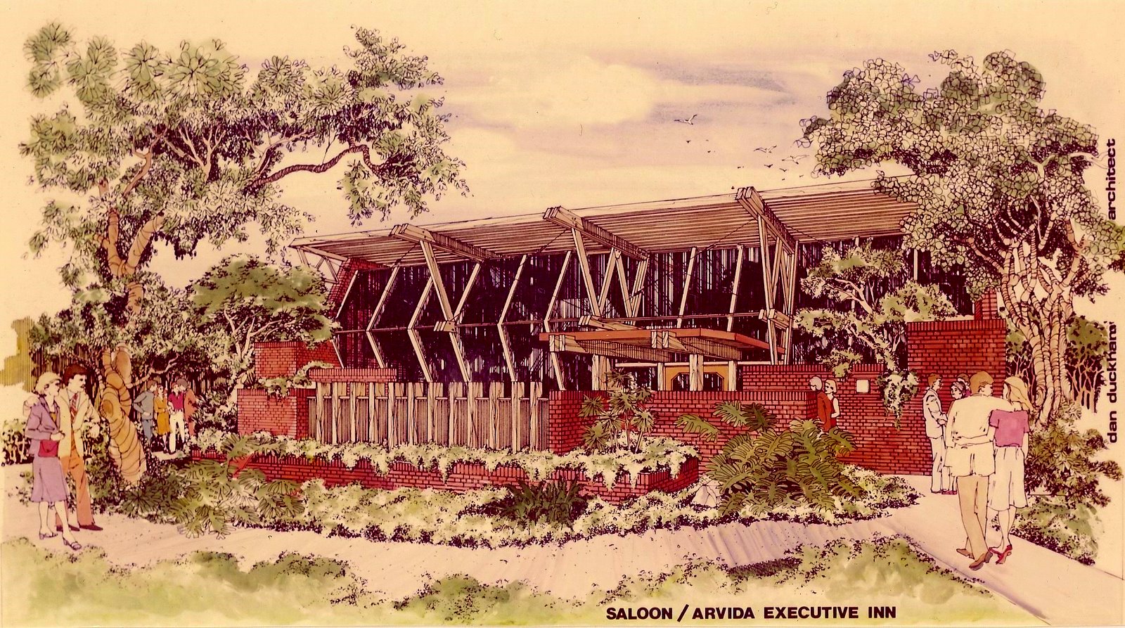 The client, Arvida Realty, had plans to build a two story hotel, and this project was to be integrated into one end of the building. It was intended also to function as a free standing bar as well as a hotel amenity.