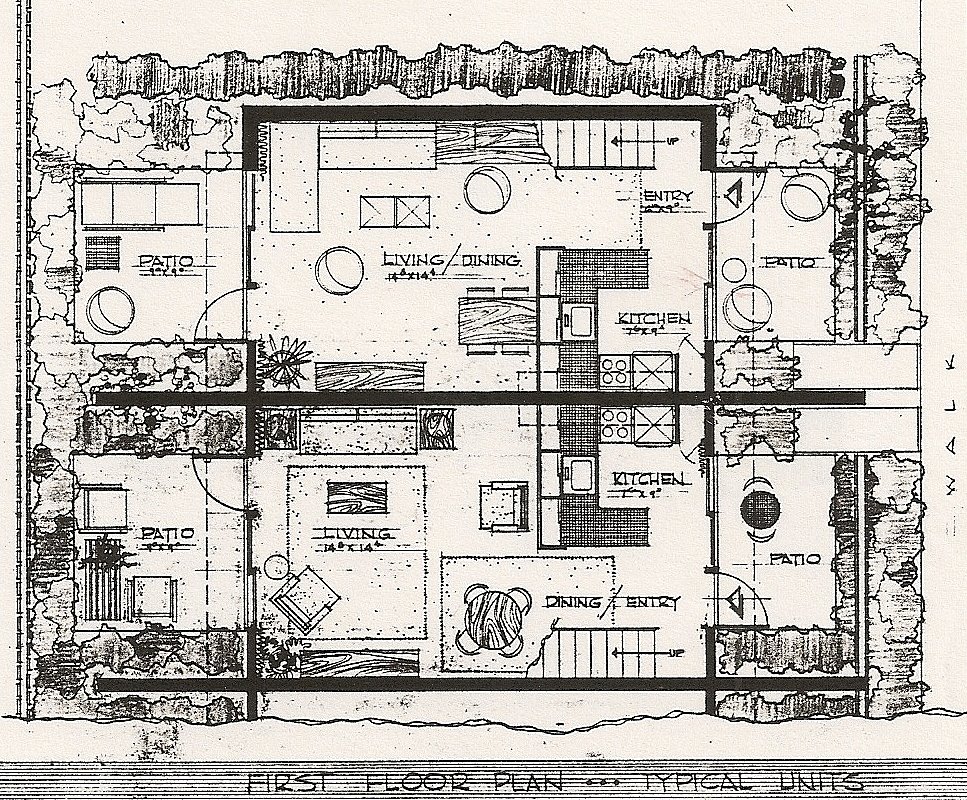 The project was a 36 unit rental town house type apartment complex. The units were all two stories with two bedrooms and one bath. Each had two private patios.