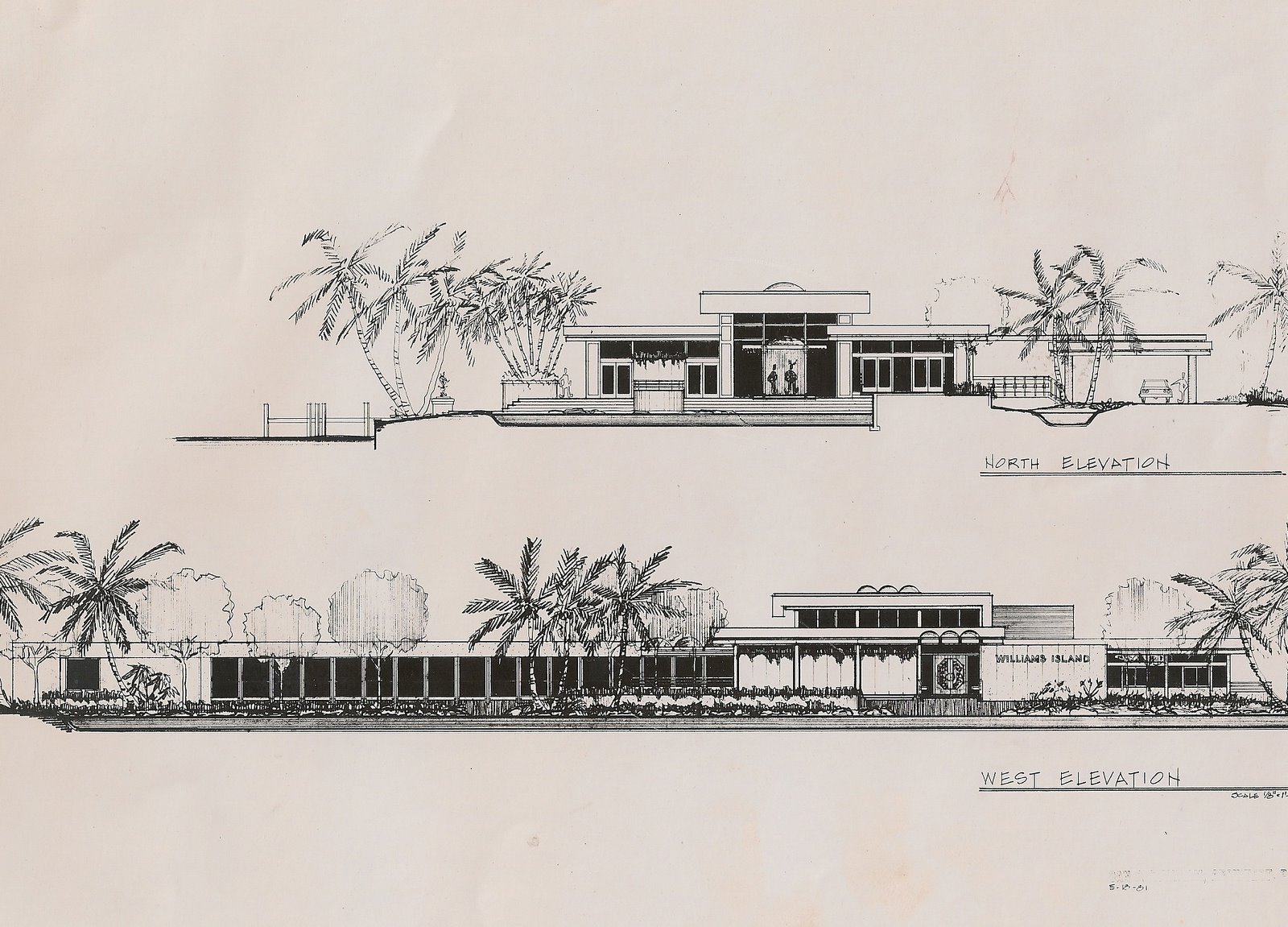 We were there at the very beginning of the Williams Island development, which would eventually become huge and very successful. The first project shown here, the Sales Center, was the first construction on the island. It was built, but without supervision and greatly compromised.
